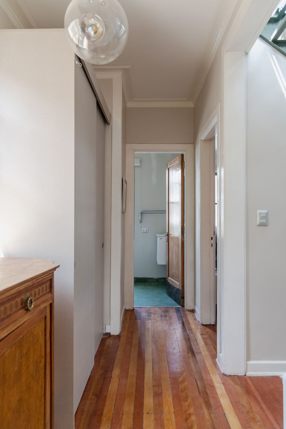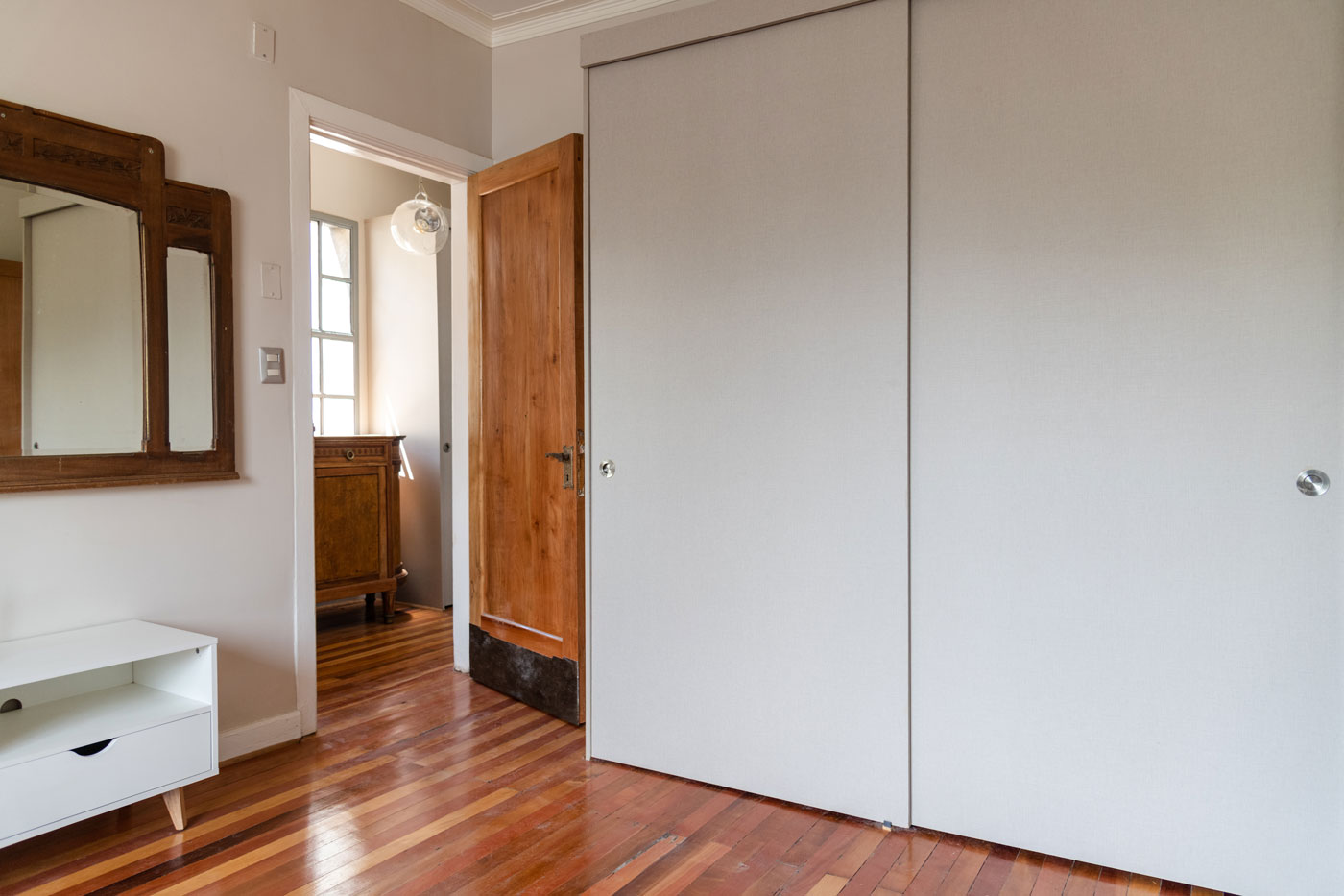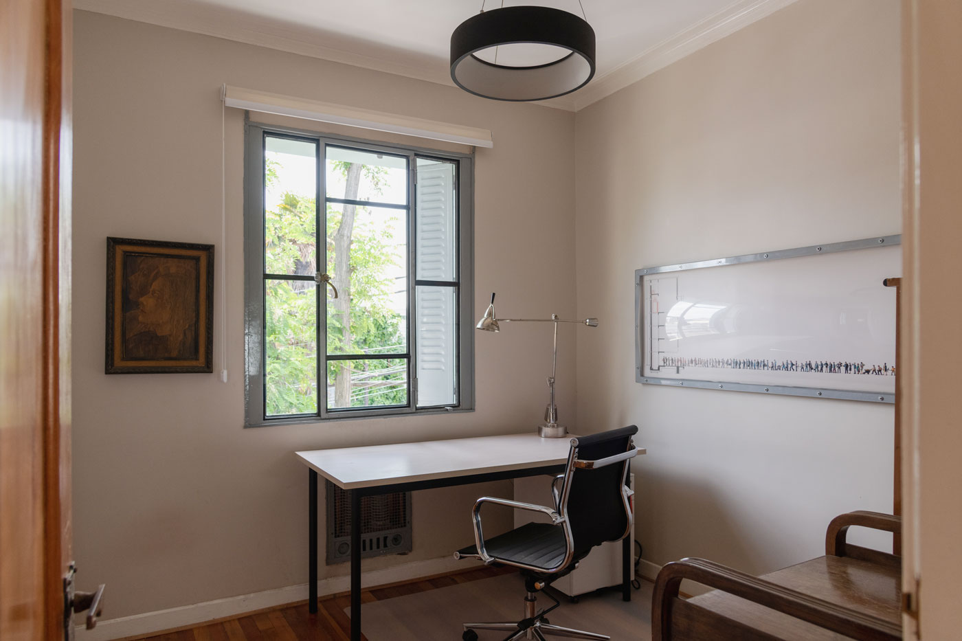 El segundo piso tiene un escritorio, un dormitorio principal con closet y una sala de estar o tercer dormitorio donde se instaló una escalera para acceder al roof top. Todos los pisos son de madera tipo tablón y sus ventana termopaneles.