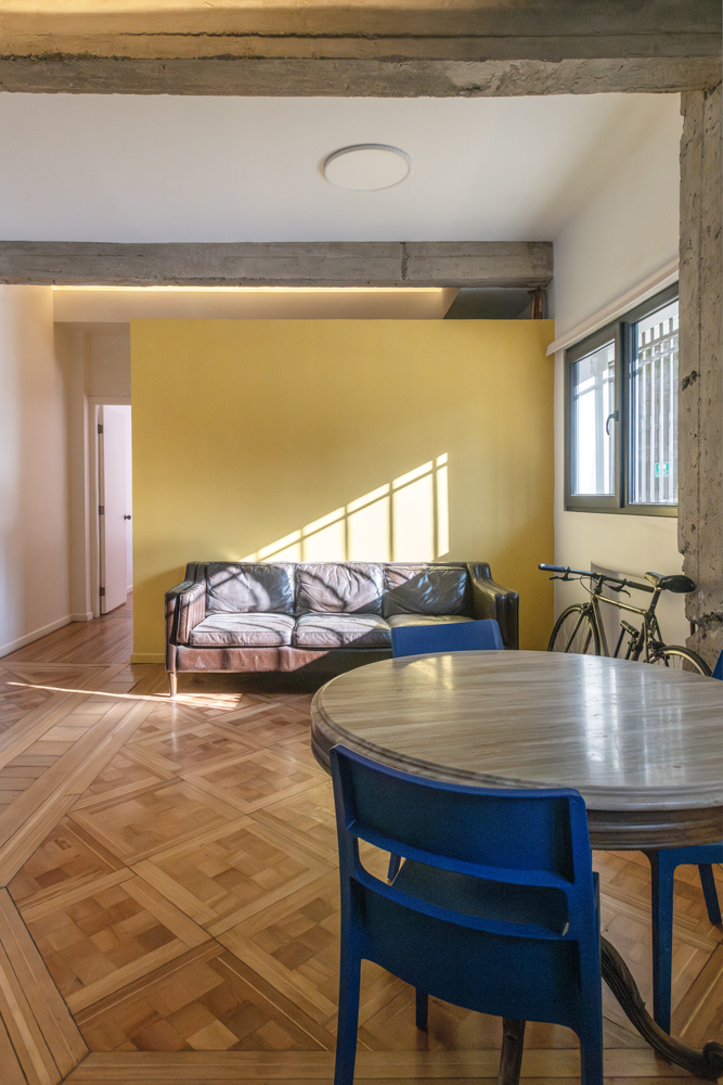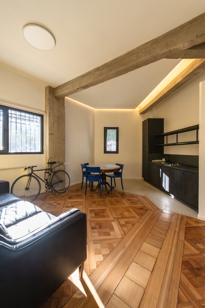 Los cielos altos aportan una gran sensación de amplitud, mientras que las vigas de hormigón a la vista y el diseño de iluminación de cielo suman un carácter contemporáneo al conjunto. Las ventanas en termopanel aíslan del ruido y mejoran la calidad interior, sumando comodidad y eficiencia en la vida cotidiana.