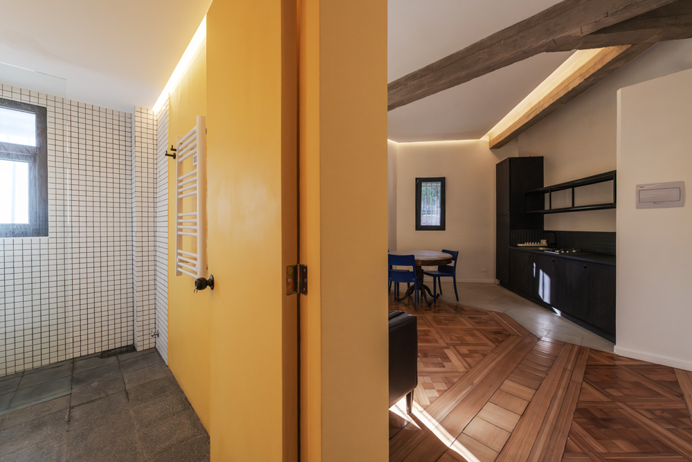 Al ingresar, se accede a un ambiente amplio y luminoso que integra cocina, living y comedor, con ventanales orientados al nororiente que permiten una excelente entrada de luz. Luego, se encuentra un baño de generosas dimensiones, con toques de color y ventana al exterior, lo que garantiza luz y ventilación natural. Finalmente, el dormitorio principal ofrece un entorno iluminado y acogedor.