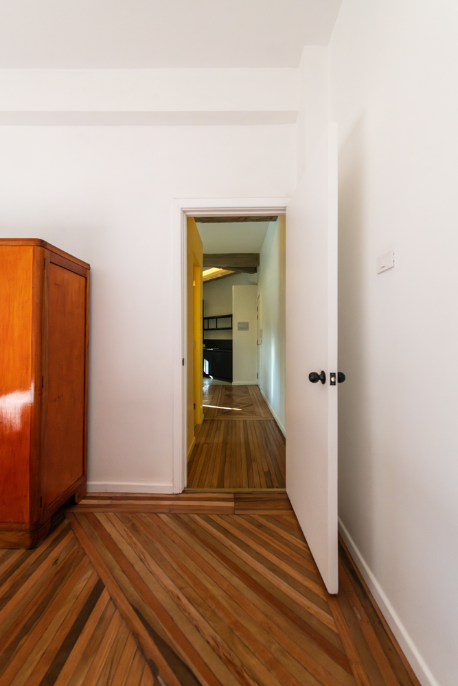 El departamento, completamente remodelado con materiales y terminaciones de primer nivel, tiene una superficie de 53 m². Conserva detalles originales, como el piso de madera en perfecto estado, y ha sido cuidadosamente refaccionado, respetando las líneas arquitectónicas de la época, pero incorporando modernidad y funcionalidad en cada rincón.