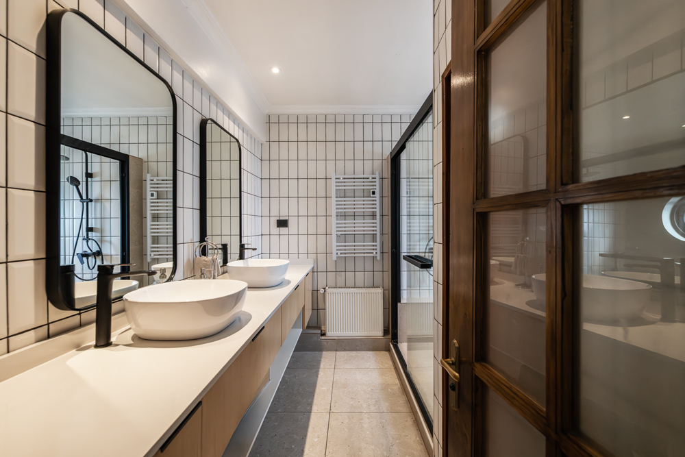 En la primera planta, un hall de entrada conduce a un luminoso living–comedor integrado y a una cocina americana renovada con isla central, pensada para cocinar y compartir en familia. Este nivel incluye además un escritorio, una sala de estar, un baño y pieza de servicio con baño propio. Desde la cocina se accede al jardín principal –verdadero corazón de la casa– donde destacan un parrón de más de 10 metros y una terraza techada, ideal para disfrutar durante todo el año. El exterior se complementa con piscina y un pabellón independiente que alberga logia y dos piezas con un baño compartido, ofreciendo un espacio versátil para oficina en casa, hobbies o visitas.