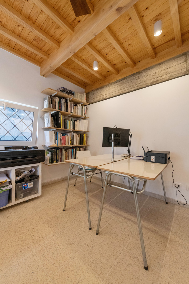 El departamento independiente, que hoy actúa como oficina, tiene un espacio que puede ser un amplio y cómodo dormitorio, un clóset donde se encuentra la kitchenette, un área de estar y un baño completo. Este departamento puede permanecer de manera independiente o conectarlo interiormente con la casa.