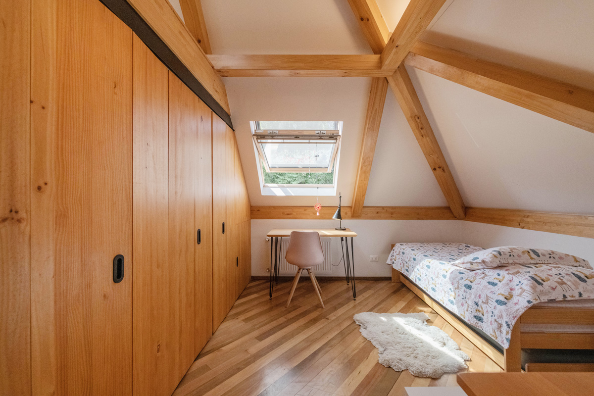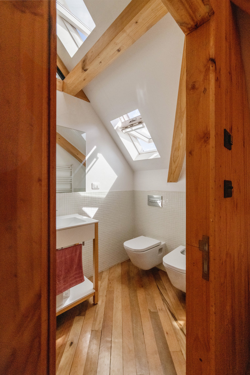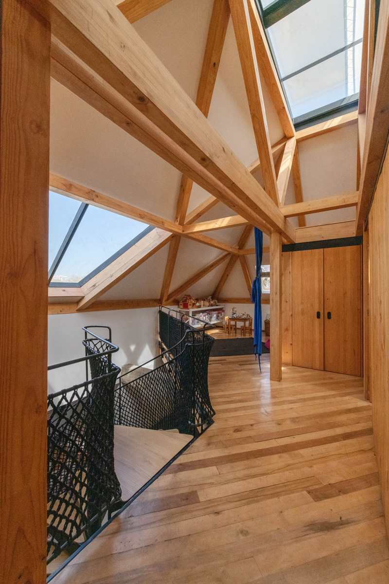 El proyecto privilegió que la luz entre en su mayoría desde la cubierta de la casa a través de lucarnas, con el propósito de repartir la mayor cantidad de iluminación por toda la planta. El cielo es, así, el principal protagonista que marca el transcurso del tiempo con su iluminación natural interior.
