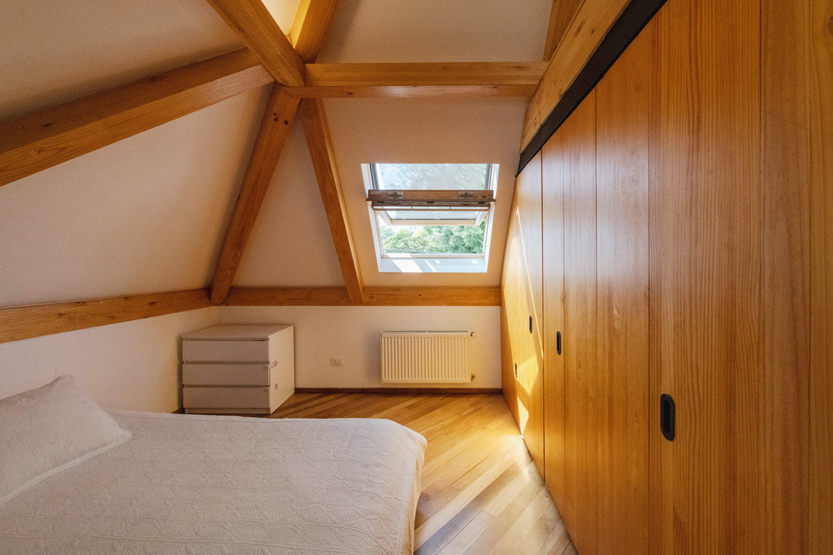 Al llegar al segundo piso encontramos la sala de estar, tres dormitorios de generosas proporciones y un baño completo. El dormitorio principal es en suite. Todos los recintos cuentan con amplios closets con puertas plegables.